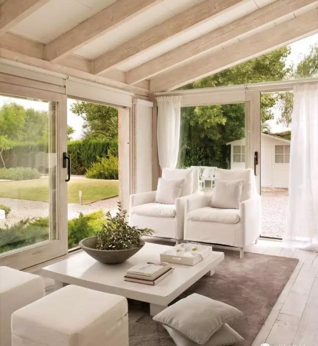 陽(yáng)光房以親近陽(yáng)光為主,它連接著室內(nèi)外的空間,因此既要和室外空間自然和諧,又與居室內(nèi)的整體風(fēng)格相吻合,達(dá)到過(guò)渡的作用。陽(yáng)光房除了是放松、休憩的去處,也是****的會(huì)客以及休閑區(qū)。在顏色上盡量使用淺色,而家具的選擇也盡可能天然。