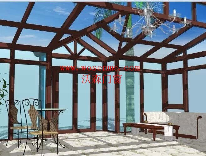 產(chǎn)品特點: 1、內(nèi)為進口實木結(jié)構(gòu),具有不變形、高強度、外觀華麗而****。 2、室外為鋁合金具有很好的耐候性和防腐蝕性。 3、采用中空玻璃,雙道密封有特殊的隔熱、隔音和裝飾效果。 4、專用的擋水槽,能有效地將屋外的雨水按照指定的位置排出使用且更具美感。